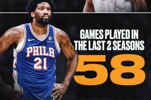 扎心了西蒙斯过去两个赛季打了61场比赛>恩比德的58场