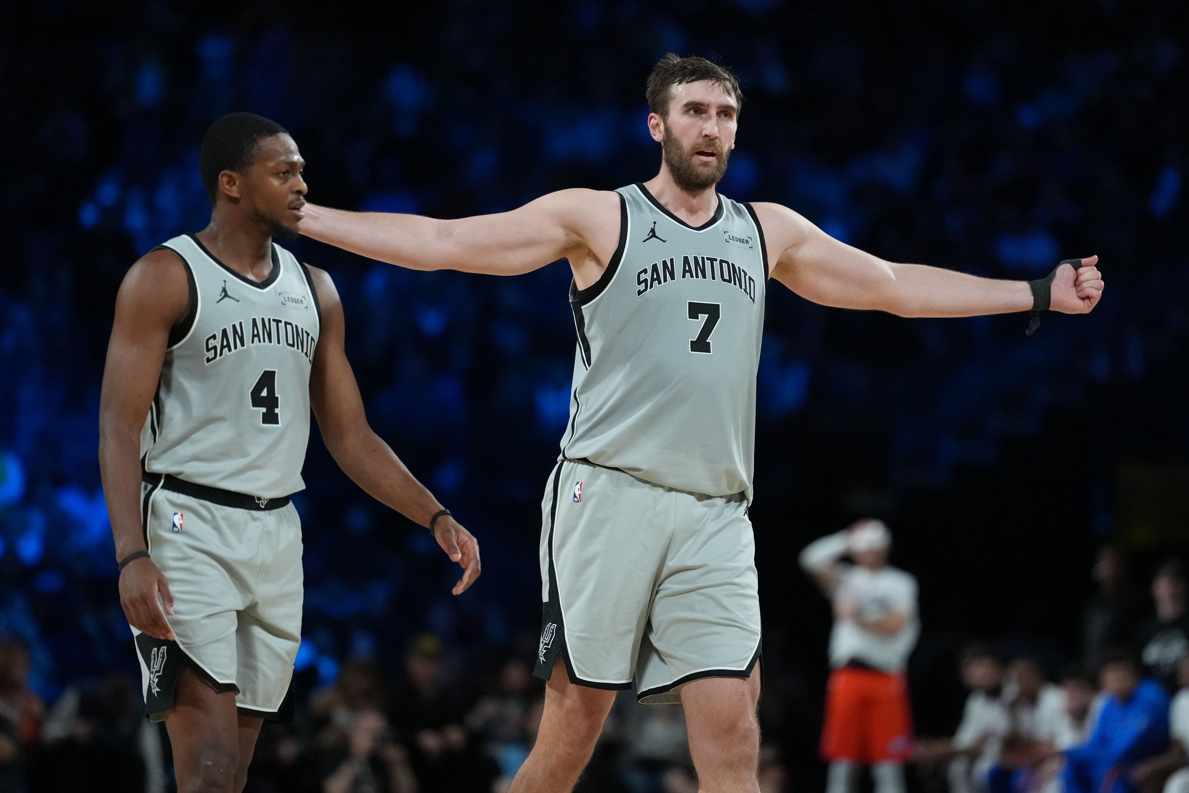 赛后,哈珀接受了记者采访。谈到下半场文班亚马缺阵,他说道:“我们就是坚持‘下一个顶上’的精神。最终,我们还是需要依靠队友。本希望他能在下半场和我们一起在场上,但我们坚持了下来,赢得了比赛。”
