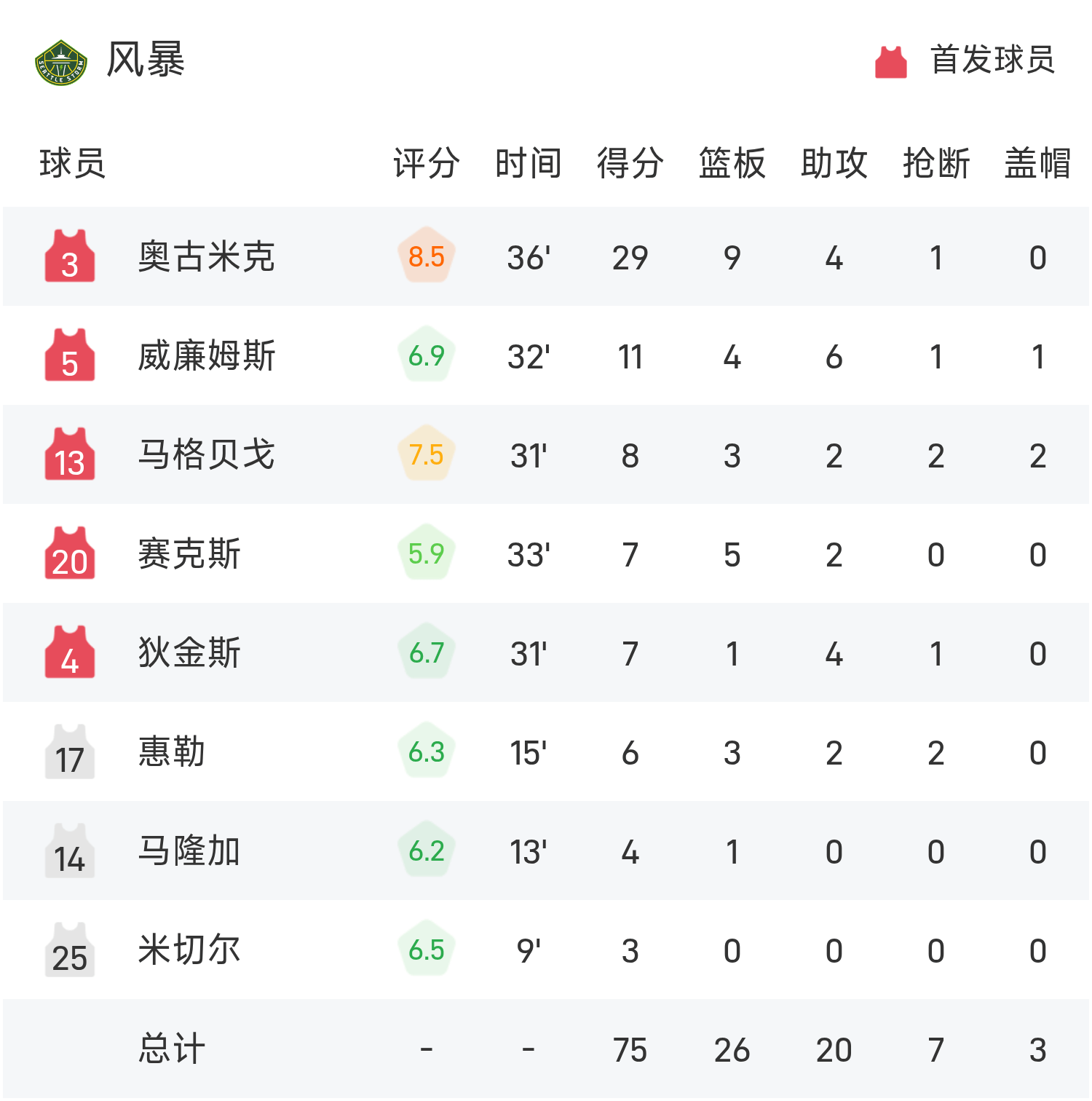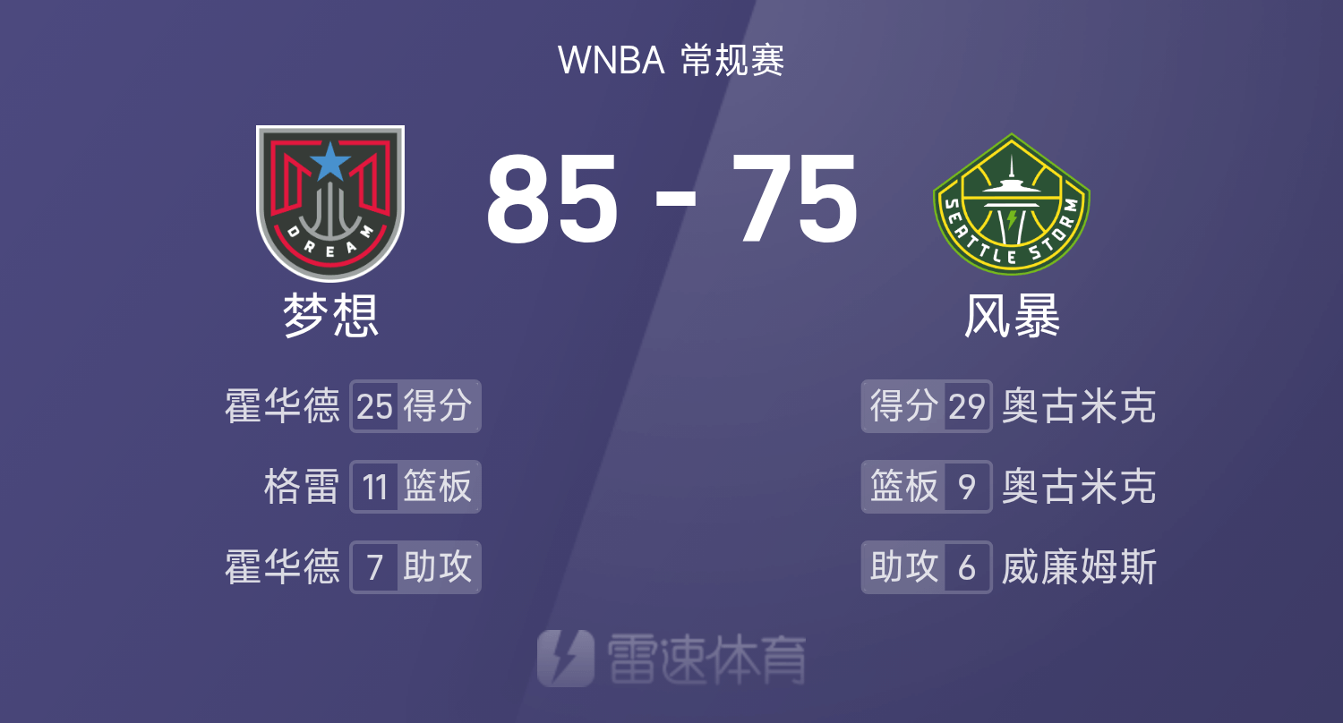 WNBA战报:霍华德25分7助,奥古米克29分9板,梦想85-75击败风暴